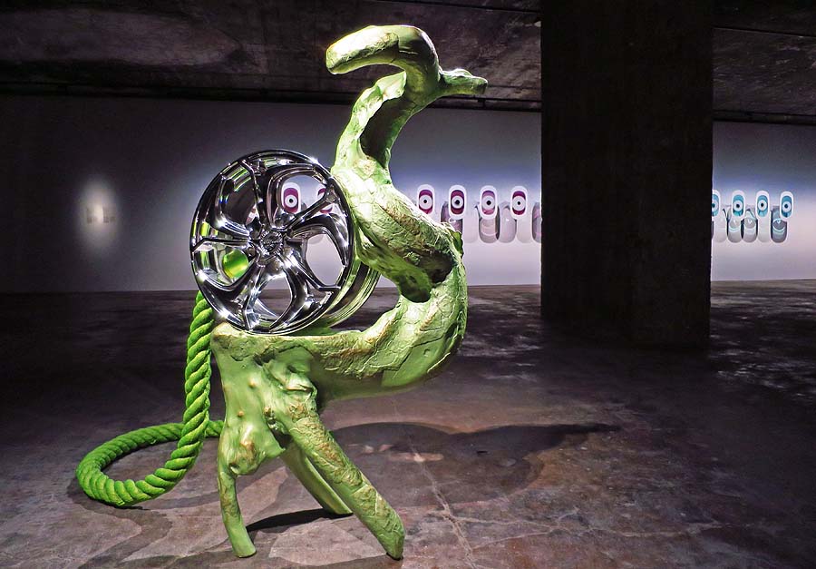 Guan Xiao, „Din Din Jaarhh“, Stahlfelge und farbige Messingskulptur, Kunstbunker der Feuerle Collection, Berlin Biennale 2016 © Holger Jacobs