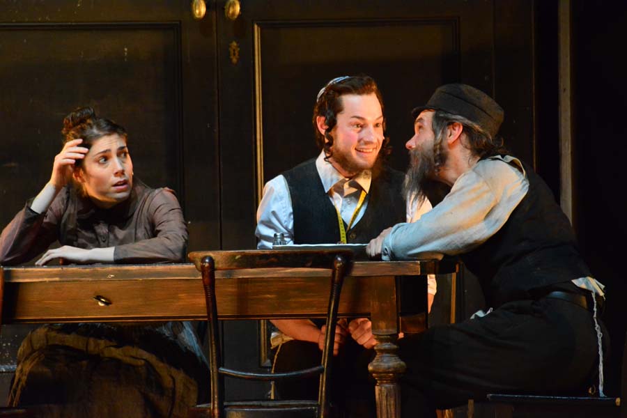 Mottl (Johannes Dunz) versucht den Vater von sich zu überzeugen, “Anatevka”, Komische Oper Berlin © Holger Jacobs