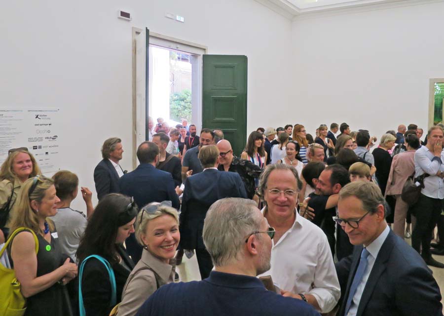 Der Regierende Bürgermeister von Berlin, Michael Müller, rechts, mit Gästen. Der Deutsche Pavillon zur Architektur Biennale in Venedig 2018, Foto: Alexander Jacobs