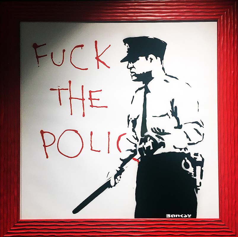 “Fuck the Police”, Exhibition “BANKSY – The Mystery of a Genuss Mind”, Photo: Holger Jacobs