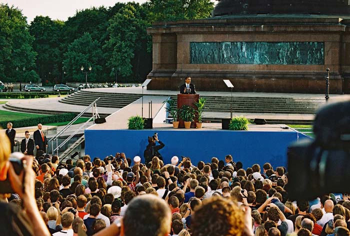 Barack Obama an der Siegessäule in Berlin 2008. ph: Holger Jacobs