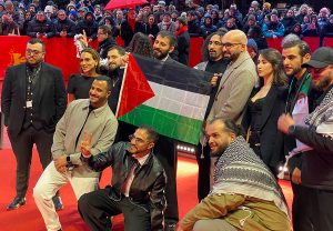 Bei der Abschlussfeier präsentierte er sich und seine Crew auf dem Roten Teppich mit einer riesigen Palästinenser-Flagge und bei der Preisübergabe im Saal wenig später erklärte er in seiner Dankesrede, dass Deutschland der Partner des Völkermordes in Gaza wäre, worauf Umweltminister Carsten Schneider (war als einziger aus dem Bundeskabinett gekommen) demonstrativ den Saal verließ.