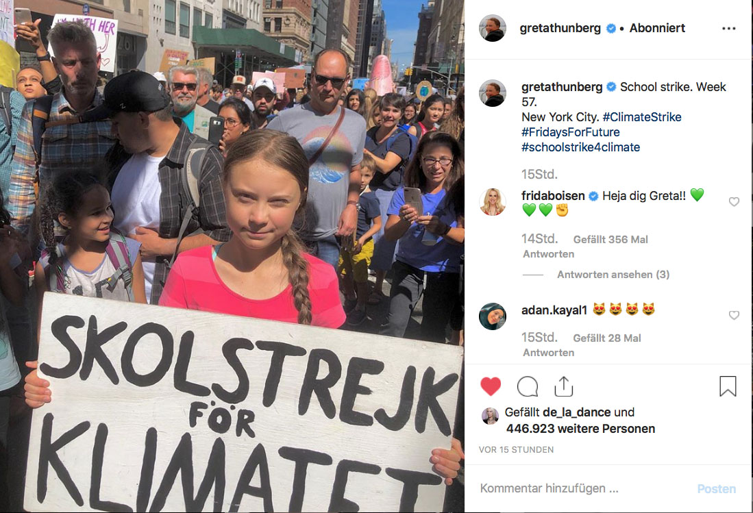 Greta Thunberg, New York, Sept. 2019 © Instagram