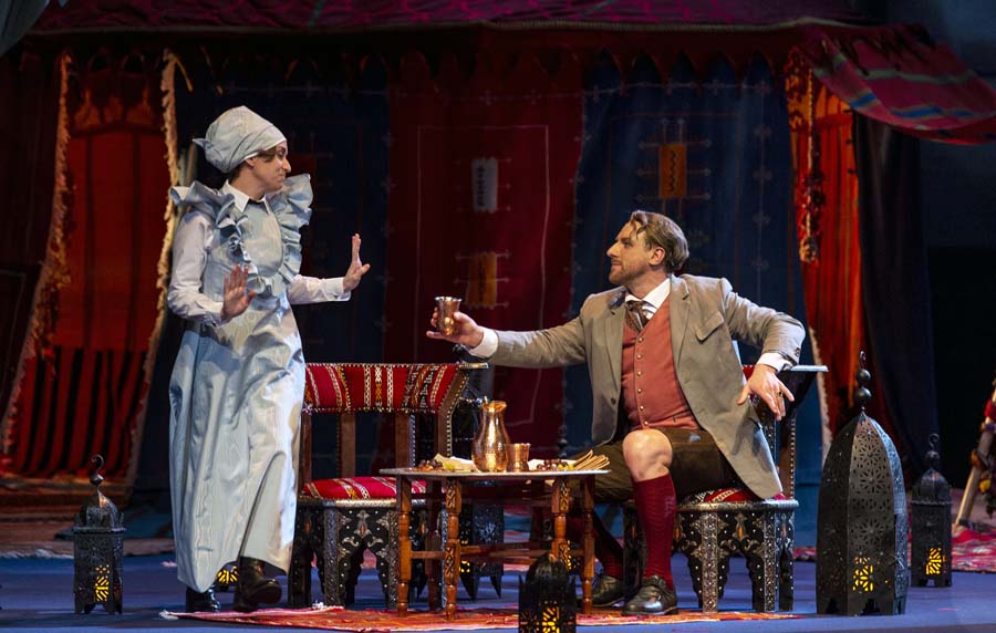 3. Akt, Baron Ochs mit der vermeintlichen Magd in einem Marokkanischen Restaurant, “Der Rosenkavalier”, im Salon von Herr von Faninal, Foto: Ruth Walz