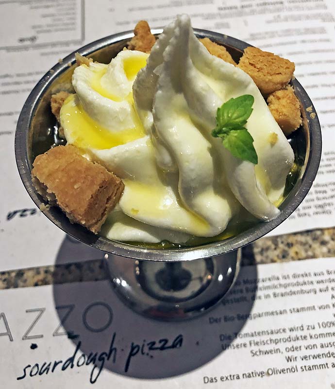 Gazzo Eis: Softeis aus Büffelmilch mit Olivenöl, Meersalz und dazu krosse Streusel, Foto: Josefine Kammerer