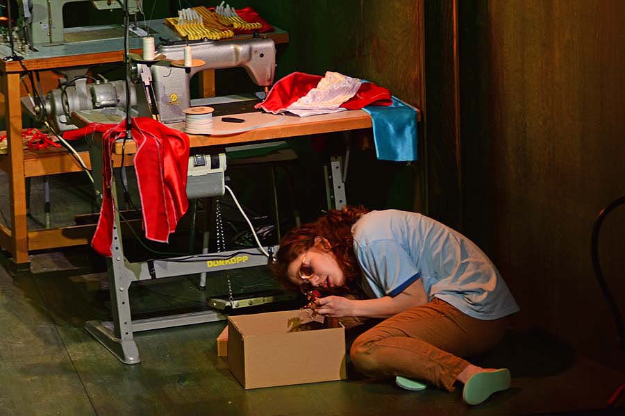 Laura spielt mit ihren Glasfiguren, „Die Glasmenagerie“, Deutsches Theater Berlin © Holger Jacobs