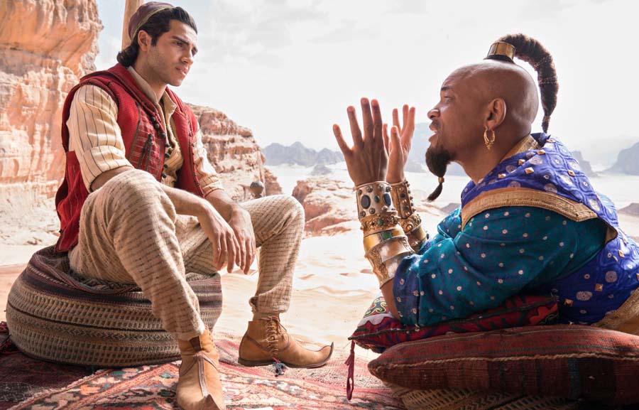 Mena Massoud as the street rat with a heart of gold, Aladdin, and Will Smith as the larger-than-life Genie in Disney’s ALADDIN, directed by Guy Ritchie.