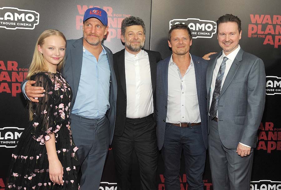 Amia Miller, Woody Harrelson, Andy Serkis and Steve Zahn et Dan Lemmon lors de la premiËre de “La PlanËte des singes : SuprÈmatie“ (War For The Planet Of The Apes) ‡ New York, le 10 juillet 2017.