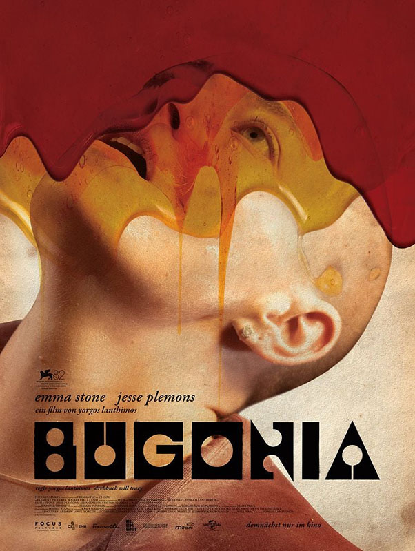 In „Bugonia“ (griechisch für „aus dem Ochsen heraus“, weil man in der Antike glaubte, die Bienen kämen aus toten Tierleibern) geht es sowohl ziemlich blutig und brutal zu, als auch geistreich und intelligent.