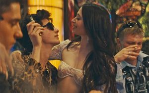 For example, Oscar-nominated TIMOTHÉE CHALAMAT (in a yellow leather suit by Givenchy) came with his current girlfriend KYLIE JENNER (in Miu Miu).