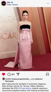 Mickey Madison in Dior, Best Actress , Oscar 2025 © Instagram/ Dior