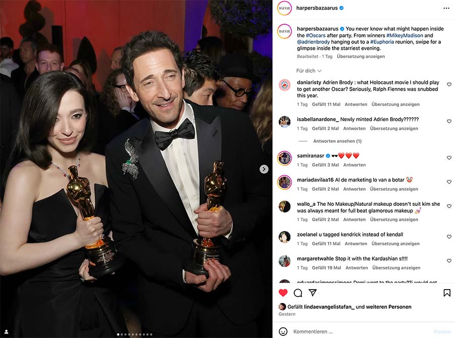 Mikey Madison, Adrien Brody © Instagram/ Harpers Bazaar