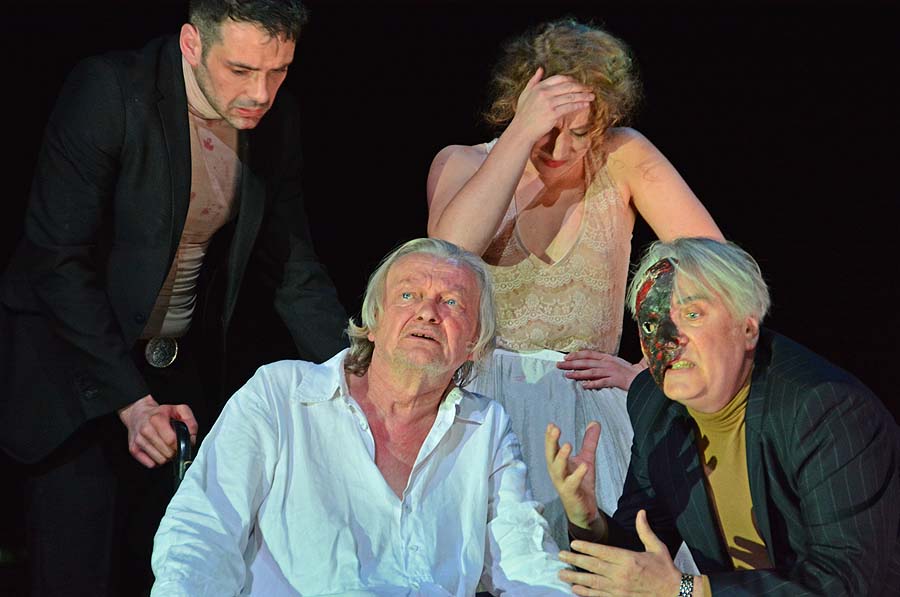Franz, Amalia, Der Graf und Hermann (Uwe Dag Berlin), “Die Räuber”, Berliner Ensemble © Holger Jacobs