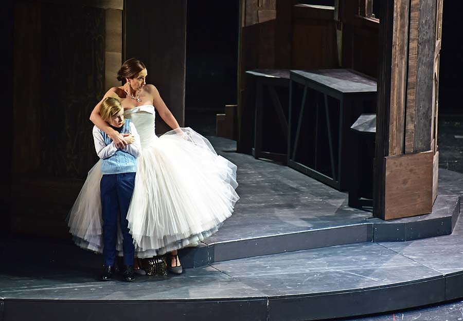 Isabella (Agneta Eichenholz) und der kleine Prinz Edward (Ben Kleiner), „Edward II.“, Deutsche Oper Berlin © Holger Jacobs