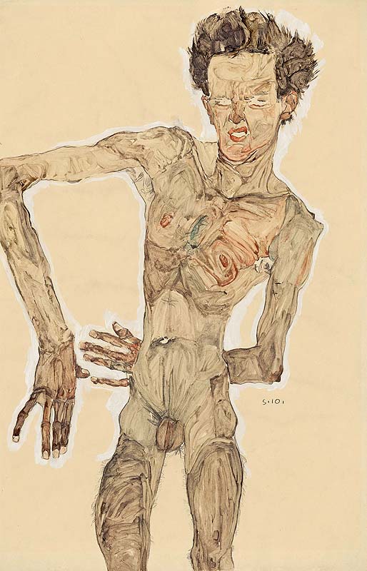 „Grimassierendes Aktselbstbildnis“, 1910, Egon Schiele in der Albertina © Albertina