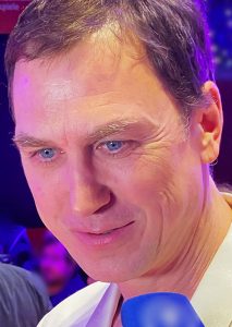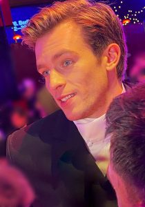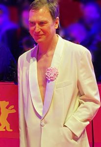 First and foremost, LARS EIDINGER, who finally cut off his stringy hair and appeared with a perfectly normal short haircut, was remarkably dressed in a white dinner jacket with a pink carnation – and nothing underneath but bare skin.