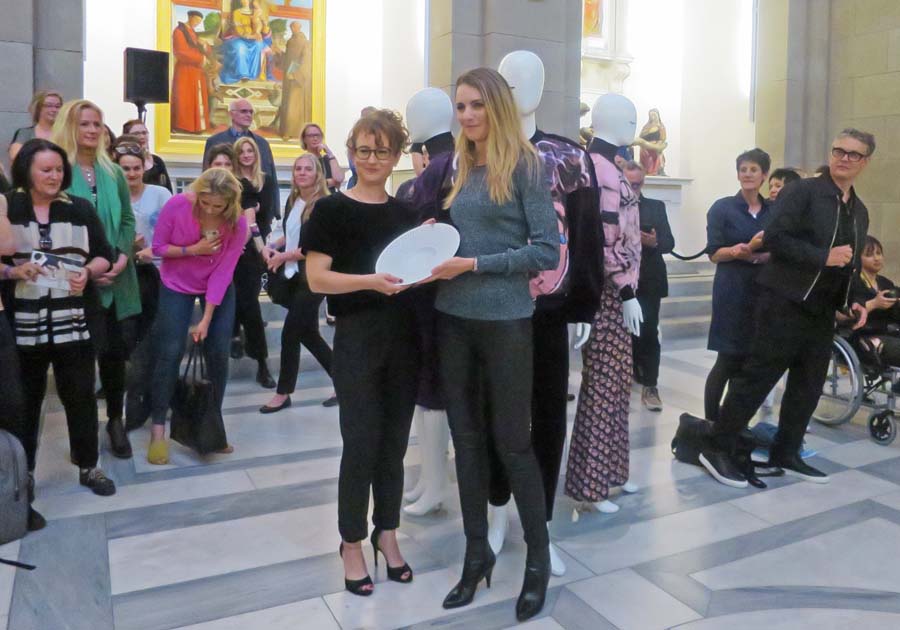 Livia Honus, 3. Preis Abschlussarbeit, mit Juror Claudia Braun (Mercedes-Benz), European Fashion Award © Holger Jacobs