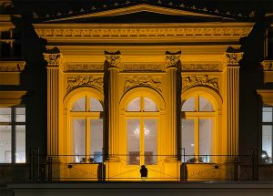 Schließlich lande ich vor der beeindruckenden Fassade des Palais Am Stadthaus, wo ich durch die hellerleuchtenden Fenster die vielen Besucher der Ausstellung mit Werken von Marie-Louise Hildebrand sehen kann.