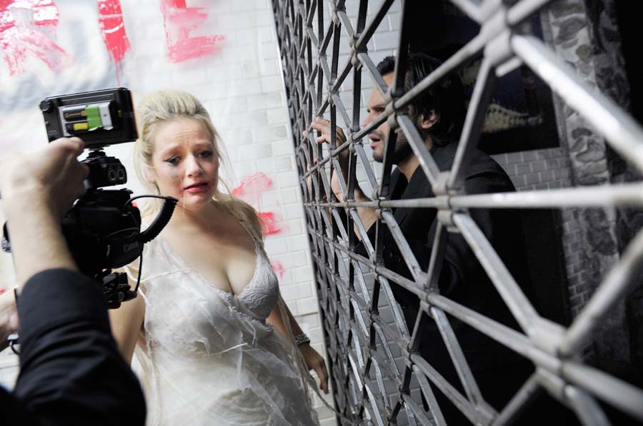 Faust von Charles Gounodin französischer Sprache mit deutschen Übertiteln30. Oktober 2016Musikalische Leitung: Marc SoustrotRegie: Frank CastorfBühne: Aleksandar DenićKostüme: Adriana Braga PeretzkiLicht: Lothar BaumgarteVideoregie: Martin AnderssonChor: Johannes KnechtDramaturgie: Ann-Christine MeckeAuf dem Bild: Mandy Fredrich (Margarethe), Atalla Ayan (Faust)Foto: Thomas Aurin