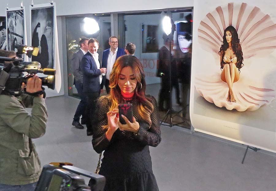 Verena Pooth vor ihrem Portrait, Ausstellung GABO “Fame” © Holger Jacobs