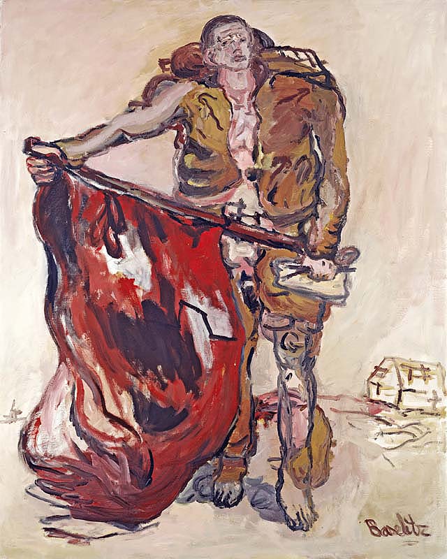 Georg Baselitz „Mit roter Flagge“, 1965, Ausstellung „Die Helden“ im Frankfurter Städel Museum 2016 © Museum Städel Frankfurt