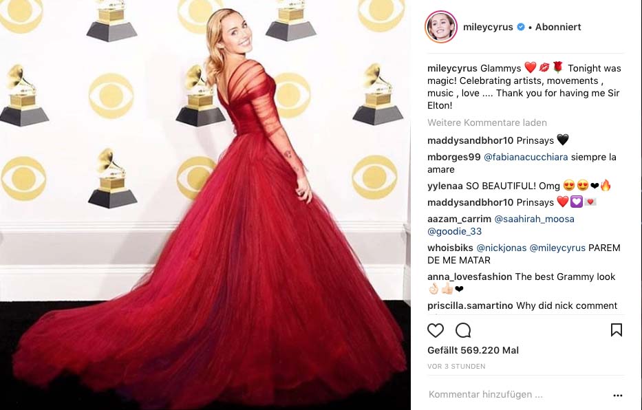 Miley Cyrus, The Grammy Award 2018 © Instagram
