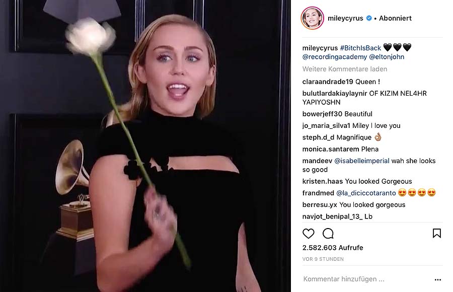 Miley Cyrus mit weißer Rose, The Grammy Award 2018 © Instagram