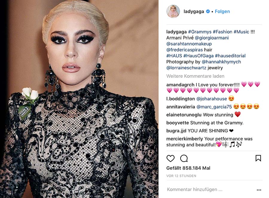 Lady Gaga, The Grammy Award 2018 © Instagram