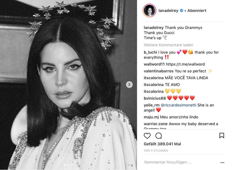 Lana del Rey, The Grammy Award 2018 © Instagram