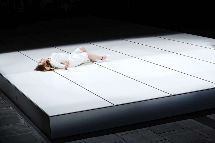 Volksbuehne Berlin, ‘Iphigenie’, nach Motiven von Euripides von Mohammad Al Attar, Regie Omar Abusaada, Buehne & Kostueme Bissan Al-Charif, Video Reem Al Ghazi .