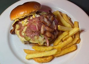 Dazu natürlich standesgemäß Pommes Frites, die aber ein wenig „lahm“ schmeckten.