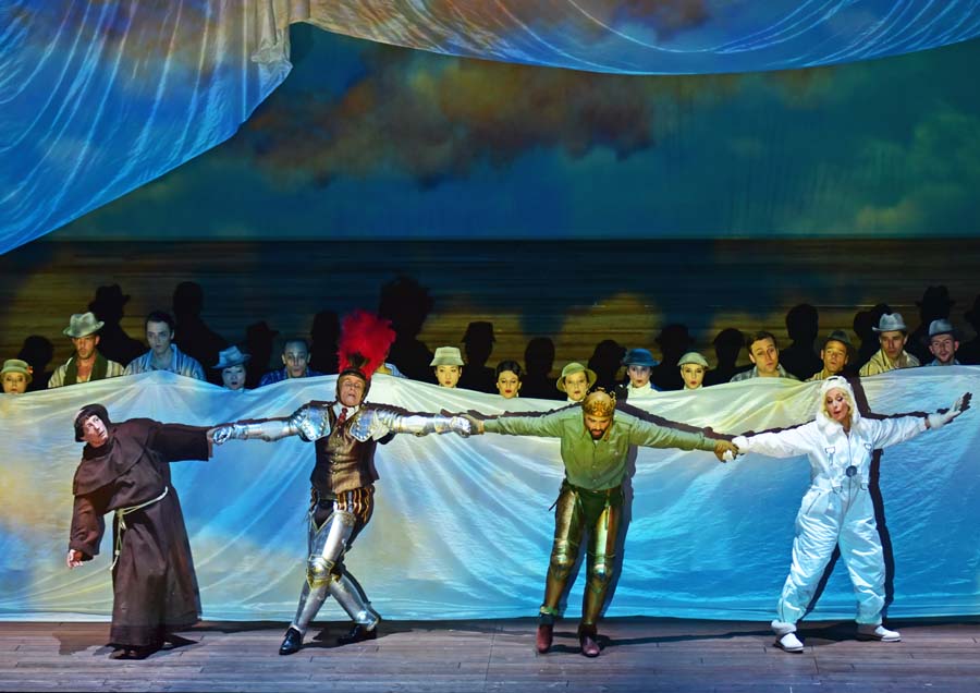 König Arthur und eine Freunde Conon (Axel Wadtke) und Aurelius (Steffen Schortie Scheumann) fliehen aus dem Wald, „King Arthur“, Staatsoper Berlin, Foto: Holger Jacobs
