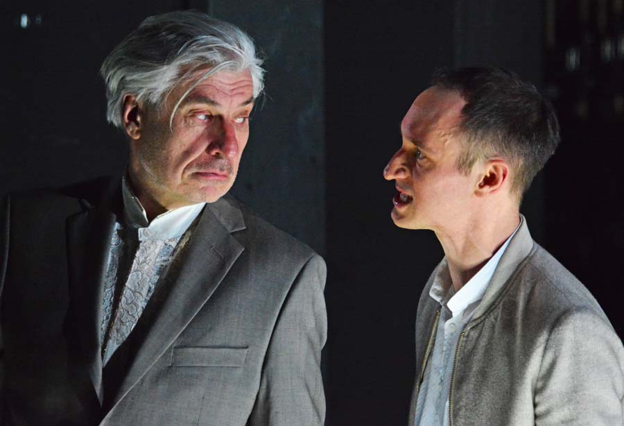 Akamas (Helmut Mooshammer und Leukon (Thorsten Hierse), „Medea. Stimmen“ im Deutschen Theater Berlin, ph: Holger Jacobs