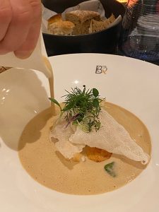 Als Vorspeise nahm ich eine Hummersuppe („Bisque de Hommard“) mit Beilagen, die gut, aber nicht überragend war.