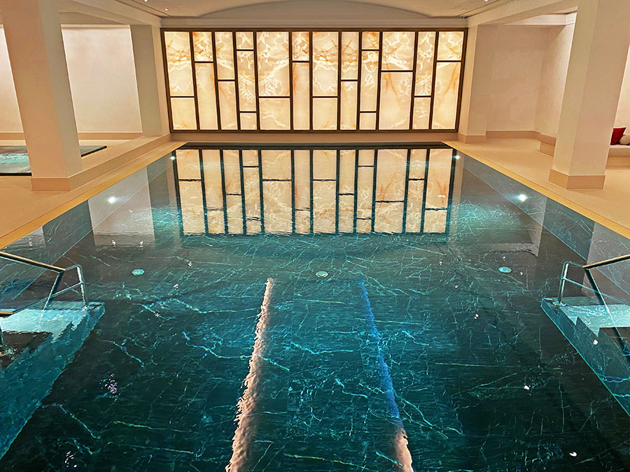 Refueled, I took a short trip to the recently renovated spa and pool area, which features three different saunas and artificial snow for rubbing down your body.