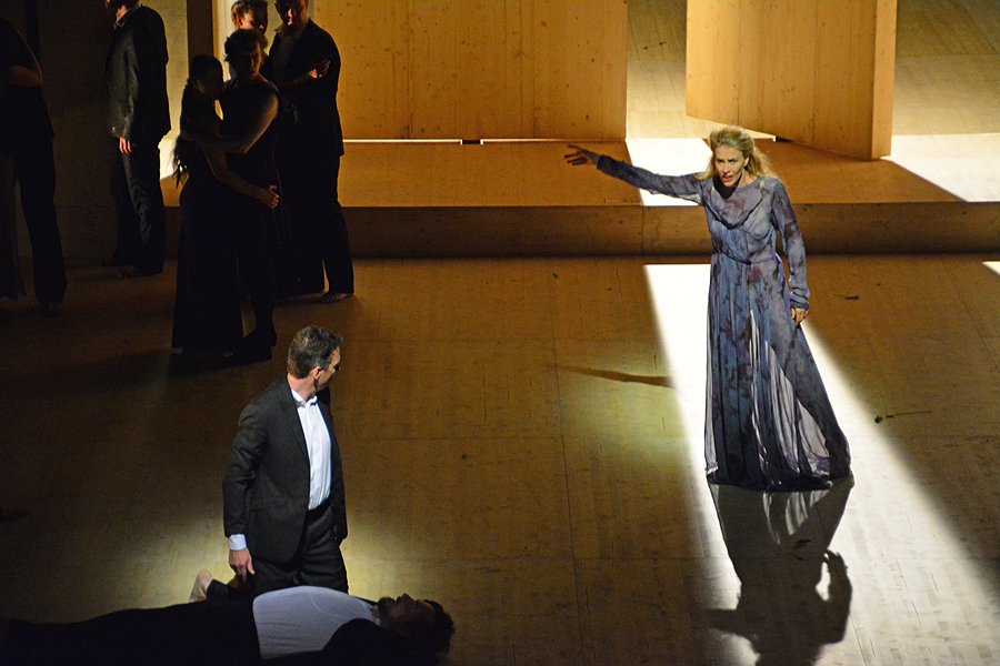 Die Botin La Messagera” (Charlotte Hellekant) bringt die traurige Nachricht, “Orfeo” Staatsoper Berlin 2015, © Holger Jacobs