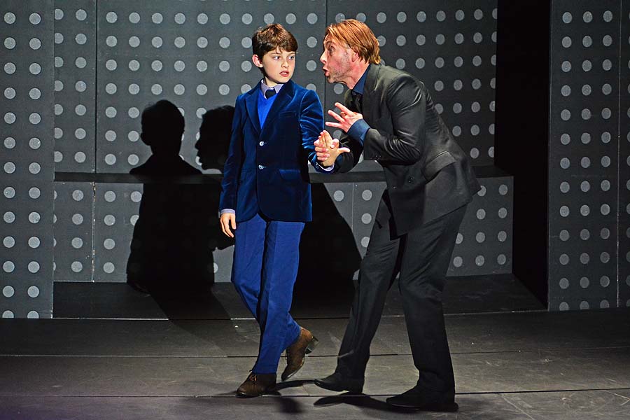 Prinz Golaud bittet seinen Sohn Yniold (Gregor-Michael Hoffmann), Pelléas und Mélisande heimlich zu beobachten, “Pelléas et Mélisande”, Komische Oper Berlin © Holger Jacobs