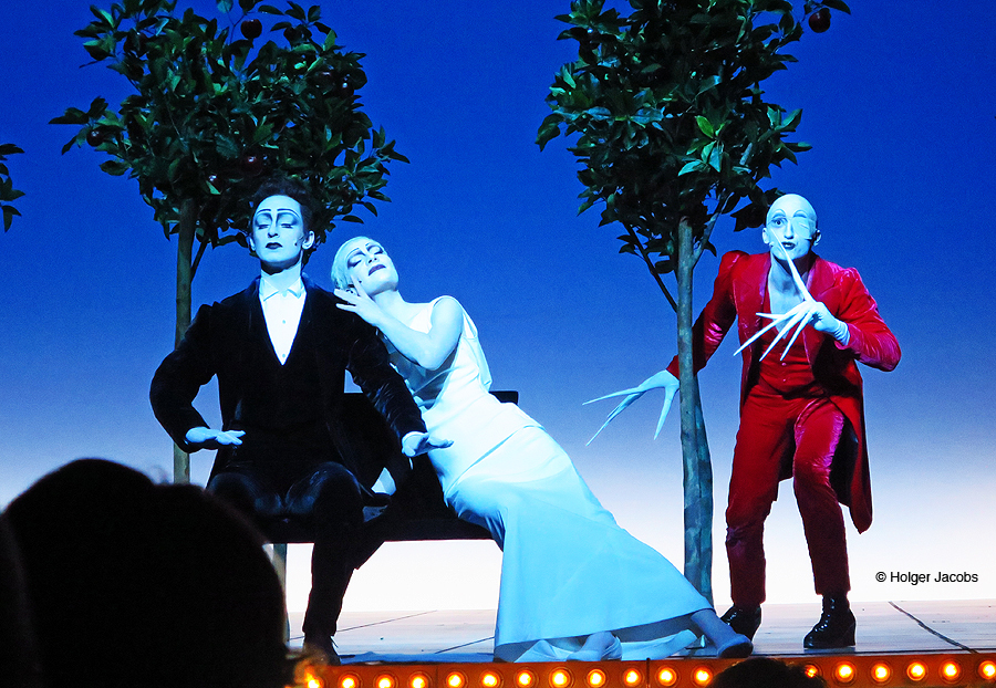 Mephisto (Christopher Nell), Faust (Fabian Stromberger) und Helena /Anna von Haebler), ©Holger Jacobs