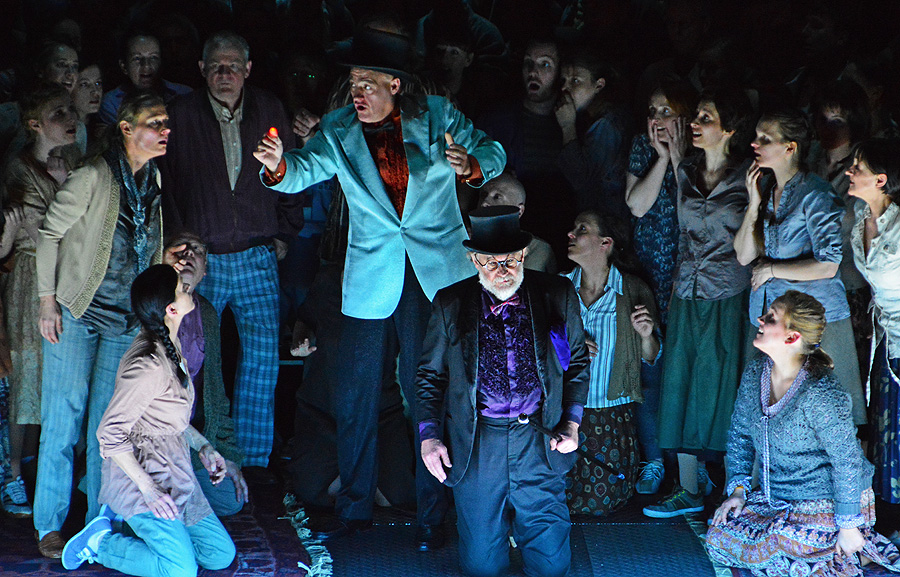 Aron versucht es mit kleinen Wundern, hier ein Feuer aus seinem Daumen, Komische Oper Berlin, © Holger Jacobs