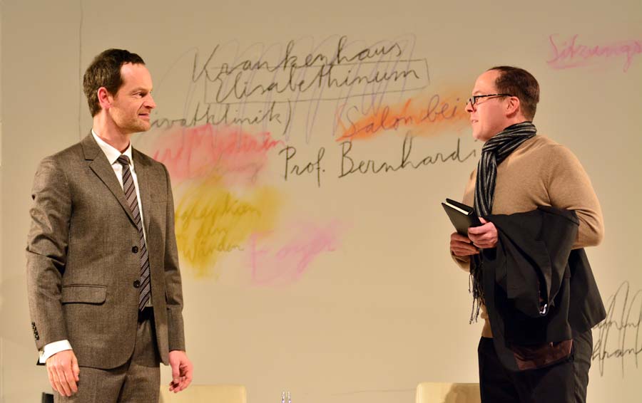Die Presse kommt um über Bernhardi zu schreiben, der lehnt dankend ab, “Professor Bernhardi”, Schaubühne Berlin, Foto: Holger Jacobs