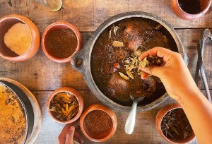 3. Relleno Negro Pollo Piibil – Earth oven roasted chicken wrapped in banana leaf with spices like pepper, cloves, cumin, roasted garlic and onion, plus chili peppers charred black to give the dish its black colour.