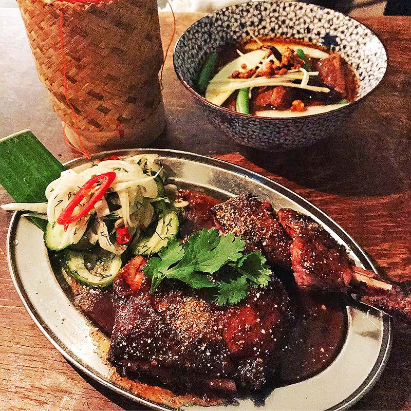 Grillhähnchen und Khao-Soi-Curry-Nudelsuppe, Foto: Josefine Kammerer