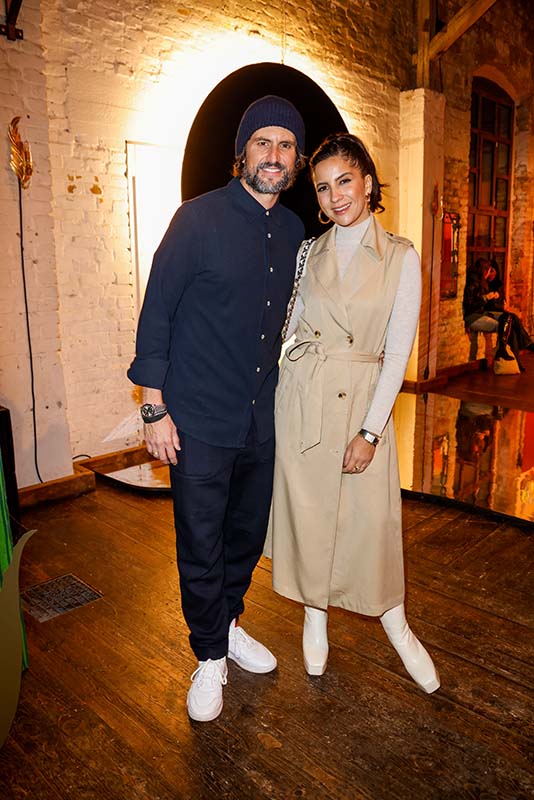 BERLIN, GERMANY – MARCH 14: German actress Chryssanthi Kavazi, wearing a full look by Ecoalf and her partner Tom Beck, wearing a full look by Ecoalf, attend the Fashion Council Germany & Cobildo de Gran Canaria Dinner during the Berlin Fashion Week March 2022 at Von Greifswald on March 14, 2022 in Berlin, Germany. (Photo by Isa Foltin/Getty Images for Fashion Council Germany)