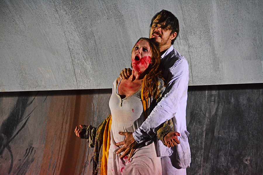 Der Pilger Luka (Tilman Strauß) und Anna (Alina Stiegler) “Nachtasyl” © Holger Jacobs