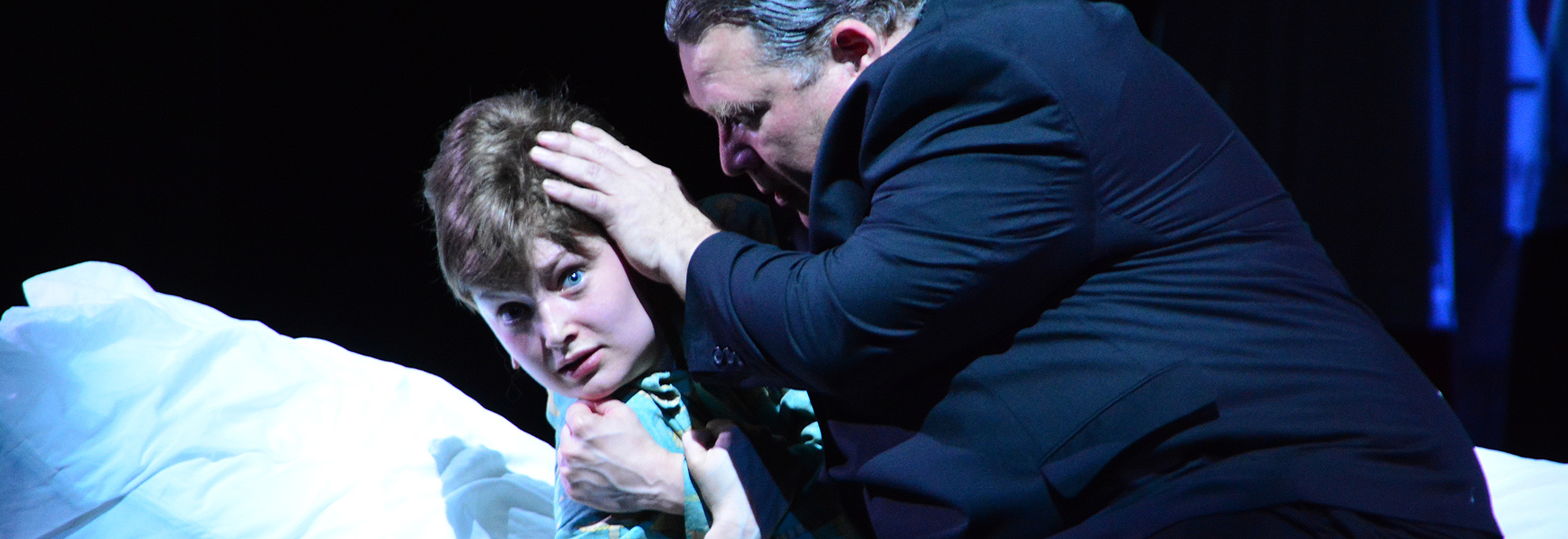 45 Bilder, hier: Chorleiter Obermayer (Andreas Lechner) nähert sich dem Schüler Aigner (Annemarie Brüntjen), „Schlafe, mein Prinzchen“ © Holger Jacobs
