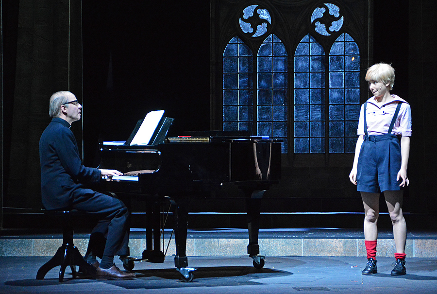 Lehrer Fortner (Thomas Wittmann) gibt sehr privaten Unterricht an Rheinberger (Dorothée Neff), „Schlafe, mein Prinzchen“ © Holger Jacobs