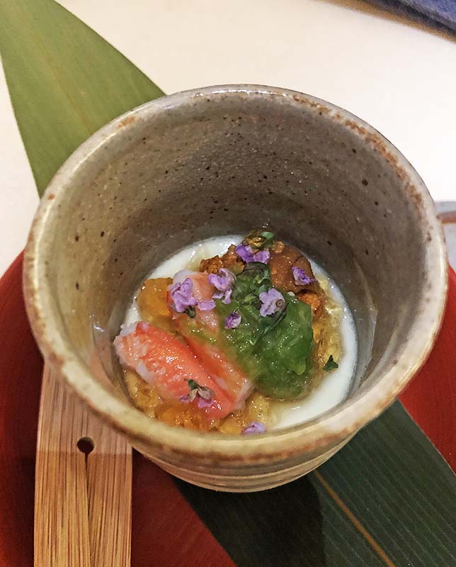 Eierstich mit Gelee aus Dashi, Krabbe, Seeigel und Okraschote ©JK