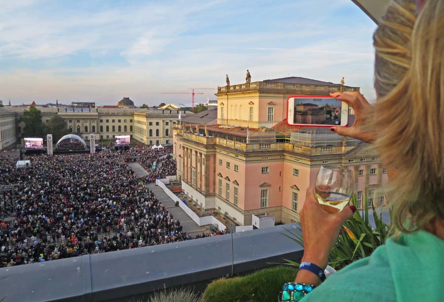 „Staatsoper für Alle“ auf dem Bebelplatz, gesehen von der Dachterrasse Hotel de Rome © Holger Jacobs
