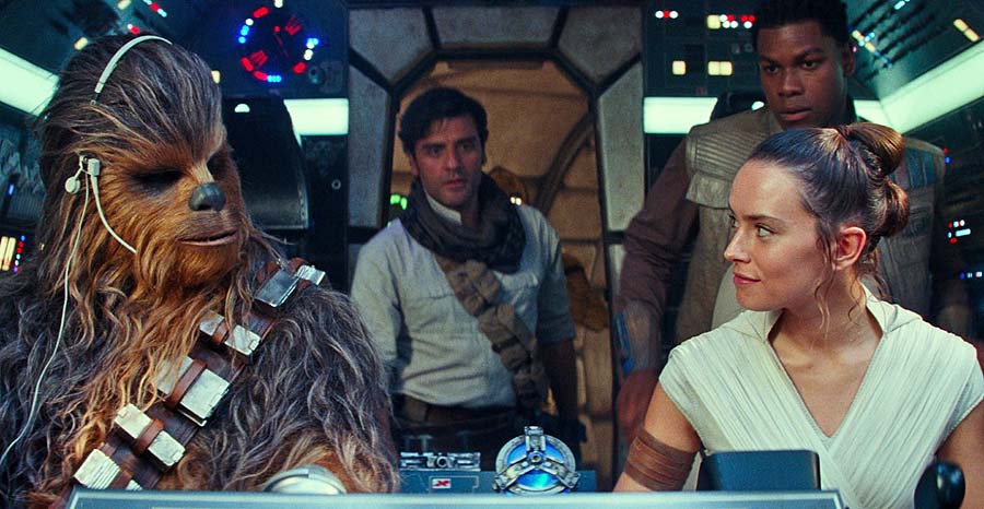 Joonas Suotamo is Chewbacca, Oscar Isaac is Poe Dameron, Daisy Ridley is Rey and John Boyega is Finn in STAR WARS: THE RISE OF SKYWALKER © Walt Disney