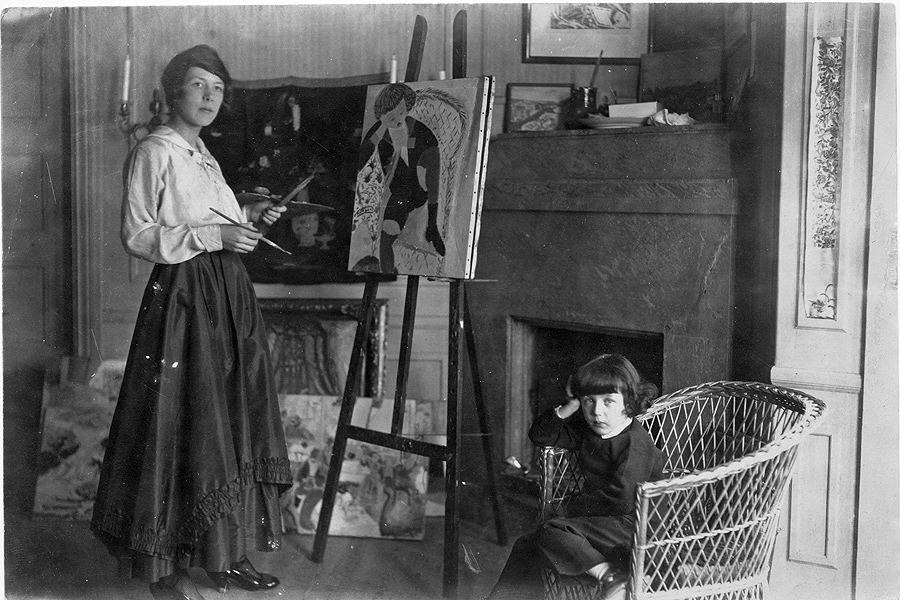 Sigrid Hjertén malt ihren Sohn Iván zu Hause (Iván mit Spielzeugboot), 1916 Private/family possession © Erben Sigrid Hjertén und Raster Förlag, Stockholm, STURM-Frauen – Schirn Frankfurt